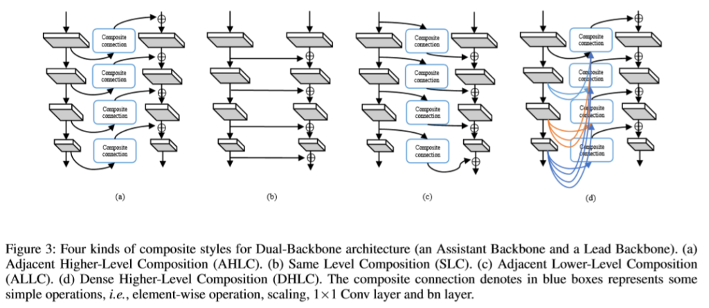 - 이전 backbone의 output이 composite connection을 통해 병렬하게 위치한 다음 backbone에 흘러들어간다.