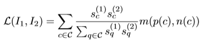 {s}^{(1)}_{c}과 {s}^{(2)}_{c} 는 각각 I_{1}, I_{2} 의 soft detection score 이며 C는 I_{1}, I_{2} 사이의 모든 corresponding point들의 집합입니다.