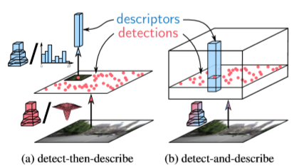 전통적으로 SIFT와 같은 알고리즘은 이미지에서 distinctive한 point를 “detect” 한 후 이 point들의 descriptor를 뽑는 “describe” 순서의 과정을 거쳤습니다.