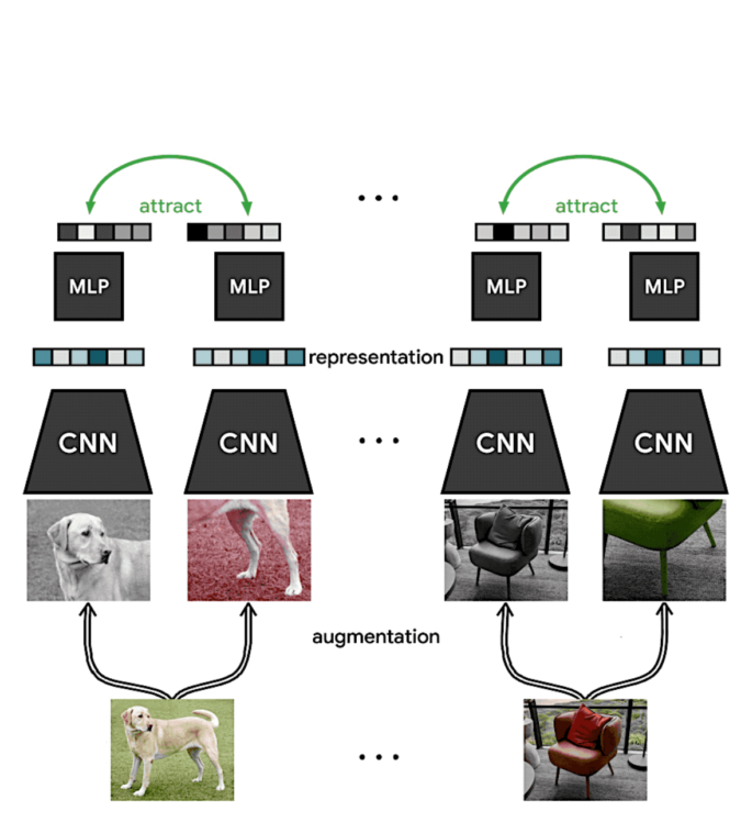 Google Research의 블로그에 있는 SimCLR에 대한 그림 설명(그림 1.)은 해당 framework가 어떻게 동작을 하는지 파악하는데 도움을 줍니다.
