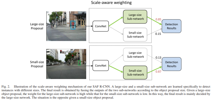 해당 연구는 proposal을 구하여 large-size proposal일 경우와 small-size proposal열 경우 두가지로 나눠 각각 스케일에 맞게 weight를 다르게 주어 학습을 진행 합니다.