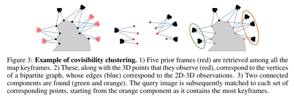 Covisbility clustering을 통해 같은 공간을 보는 top k를 선별, 군집화함으로써 3D point의 수 감소, noise한 point를 계산하지 않음으로써 효율적인 연산과 속도 향상을 이끌었습니다. 세부적인 방법은 아래와 같습니다.