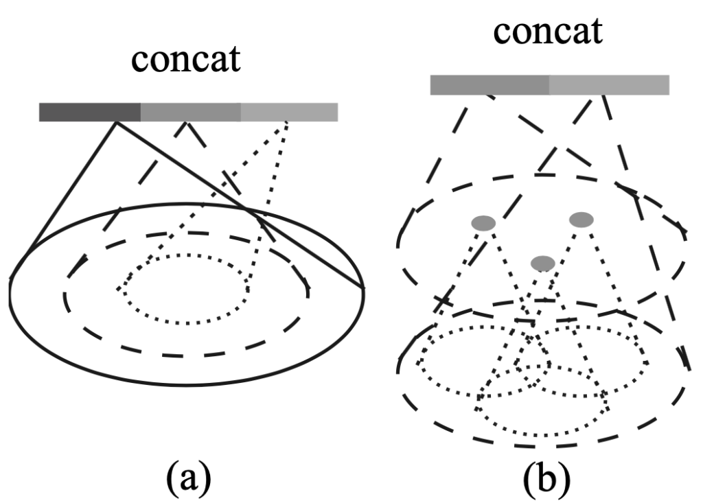 그림 2. (a) Multi-scale grouping (MSG); (b) Multi-resolution grouping (MRG)