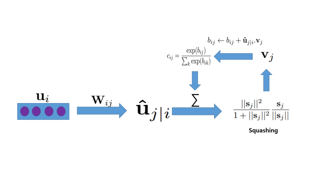 • v_{j} : 캡슐 j의 출력 벡터