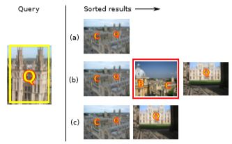 주로 QE 라고 불리우는 query expansion 은 retrieval system 에서 성능 향상의 주된 영향을 끼칩니다. 그 중에서도 average query expansion 은 주어진 query 에 대해 tf-idf(Term Frequency – Inverse Document Frequency, 한 문장 내에서 단어가 얼마나 중요한지 확인하는 지표) 라는 유사도로 순위를 매기고, top-rank 된 이미지들 중에서 spatial verification 을 하는 과정을 거칩니다. Spatial verification 이 되고 query 와 동일한 부분에 해당하는 ROI의 BoW vector도 얻어낼 수 있으며 query와 이미지들의 ROI BoW vector 들을 함께 평균내어 얻은 vector 로 database 에서 query 에 대한 후보군을 다시 뽑게 됩니다.