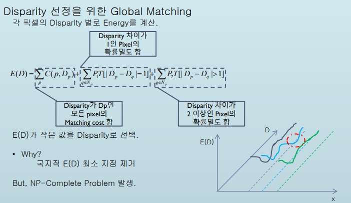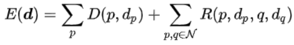 에너지 함수를 최소화하는(=영상이 가장 매끄러운, stereo vision의 제약 조건 중 하나인 smoothness를 충족하는) 경우를 찾음으로써 최적의 깊이 영상을 만들어 낸다.