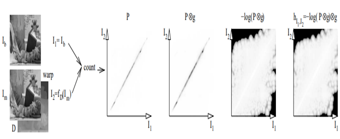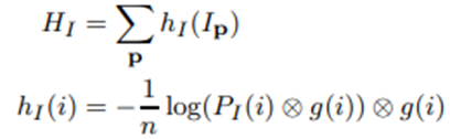 이때 P는 확률 밀도 함수 (해당 pixel이 어떤 intensity값을 가질 확률) 로써 다음과 같이 정의된다.