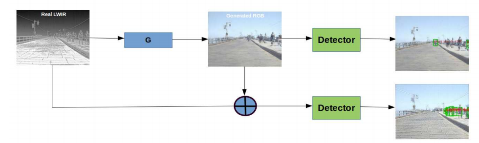 - RGB를 이용해 sythetic LWIR(Thermal) 이미지를 생성하고, 이를 학습에 사용하면 실제 Thermal 이미지에 대한 모델에 detection 성능을 향상시킬 수 있음을 처음으로 나타냈다.