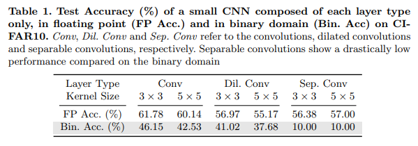 1) 기존 floating point NAS들의 Search space는 binary network에 맞지 않아 quantization error가 커진다. (e.g separable convolution, 아래 세션 참고.)