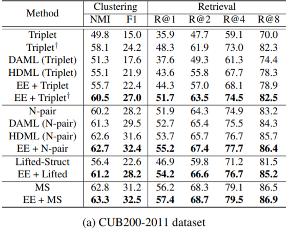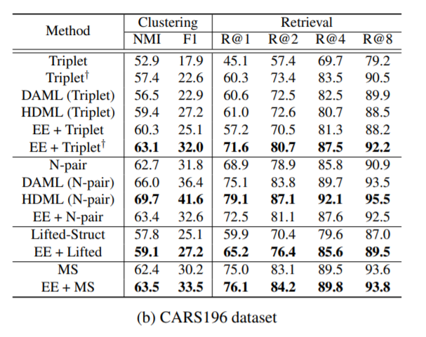 즉 EE를 추가했을 경우 triplet loss 단독으로 사용했을 때 보다 더 많은 hardest negative pair가 생성되는 것을 확인할 수 있습니다.