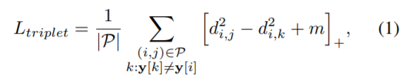 Triplet loss에 대한 수식은 위와 같습니다. d^{2}_{i,j} 는 anchor와 positive의 유클리디안 거리를 나타내는 것이며, 뒤에 d^{2}_{i,k} 는 anchor와 negative의 유클리디안 거리를 나타내는 것입니다.