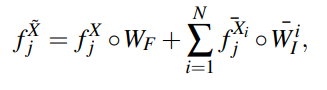 fusion module은 2개의 input을 필요로합니다. 먼저 첫번째는 full-image feature를 나타내는 f_{j}^{X}, 두 번째는 instance feature bunch(set)과 그에 대응되는 object bounding boxes\{f^{X_{i}}_{j},B_{i}\}입니다.