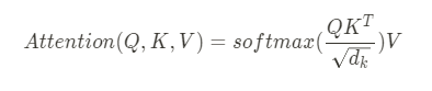 수식 2. Query Q, Key K, Value V의 Attention 식, scaled attention dot-product