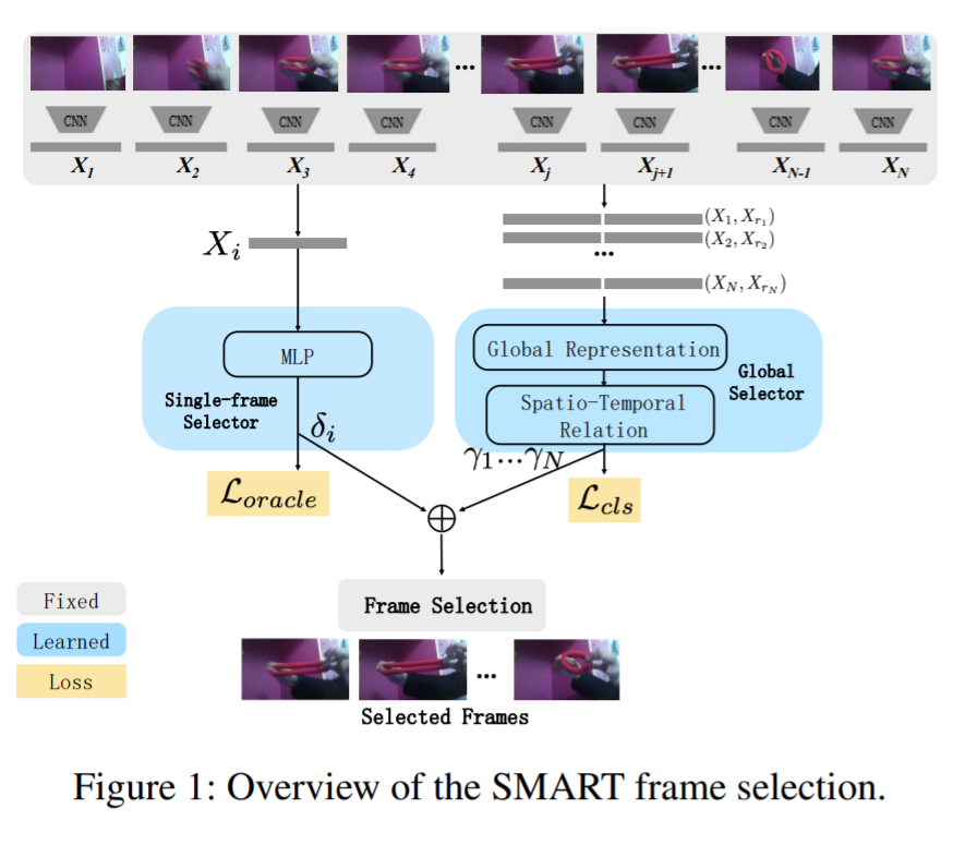 명칭을 SMART frame selection으로 하였는데 SMART는 Sampling through Multi-frame Attention and Relations in Time의 약자이다.