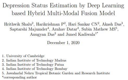 2 thoughts on “Depression Status Estimation by Deep Learning based Hybrid Multi-Modal Fusion Model