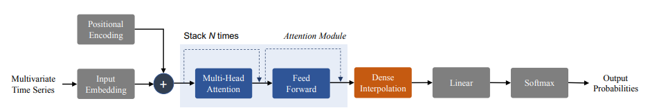 모델의 아키텍처는 오디오나 비주얼 피처가 multivariate time-series representation task이기 때문에 해당 분야에서 가장 많이 사용되는 Simply Attend and Diagnose 아키텍처를 사용했다고 합니다. 해당 아키텍처를 처음으로 제안한 논문에서 사용한 구조는 다음과 같습니다.