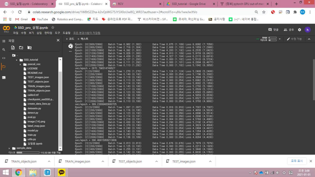 → !cd /content/drive/MyDrive/SSD_tutorial/ && python train.py 이
