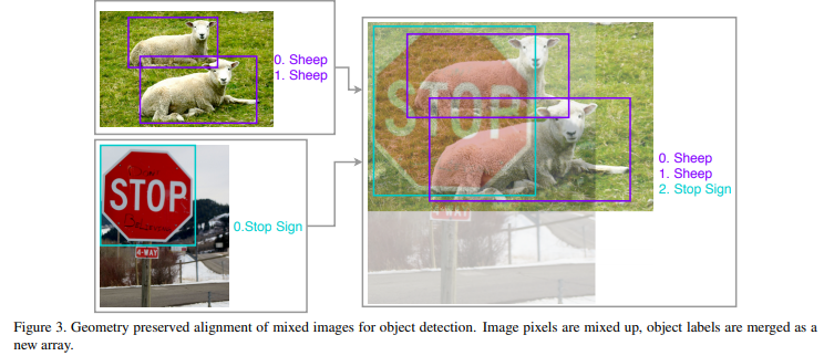 Noise Augmentations : 서로다른 특성을 같는 RGB와 Thermal의 이미지를 섞는 방법입니다. 해당 방법은 ” Bag of Freebies for Training Object Detection Neural Networks ” 에서 제안됐습니다. 이해를 돕기위해 해당 논문에서 사용한 그림을 발췌하였습니다.