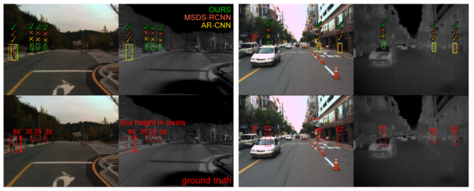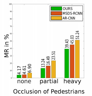 작은 Pedestrian Detection(크기가 작다는건 멀리있다고 생각할수도 있겠죠?)에 대해서도 앞서 제안된 방법론들보다 좋은 성능을 나타냈습니다. (평가지표는 Miss rate 이므로 낮을수록 좋습니다)