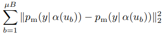 최근 SSL 방법론 중 SOTA 모델에서는 Consistency regularization이라는 것이 중요하게 여겨지고 있습니다. Consistency regularization이란 이미지에 어떤 변환(augmentation)을 주어도 유사한 예측값을 출력해야한다는 가정하에 Unlabeled 이미지를 사용하는 것을 말합니다. 이를 달성하기 위한 Loss 는 식 (1)과 같습니다. 여기서 \mu B는 Unlabeled 데이터의 한 batch를 의미하며 p_m(y|\alpha(u_b)) 는 입력 \alpha(u_b)에 대한 예측값 확률분포, \alpha는 weak augmentation을 의미합니다. 식 (1)에서 \alpha 와 p_m은 각각 stochastic(=random)한 함수이기 때문에 서로 다른 것을 의미합니다.