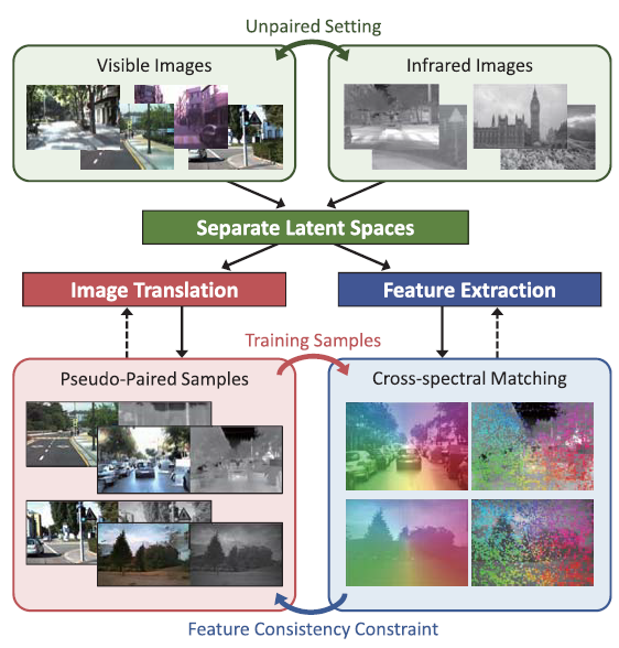 데이터셋이 적은 것을 해결하기 위해서 Pseudo label의 사용을 제안한다. Pseudo label을 생성해서 데이터의 갯수를 늘리고 그 데이터를 이용해서 CNN 베이스의 Local Matching 방법론을 학습시켜 Cross spectral Matching을 수행한다.
