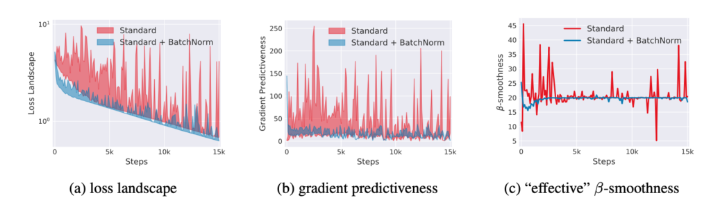 저자가 주장하는 BatchNorm이 잘 작동하는 이유는 “ Batch Norm이 optimization landscape를 smooth 하게 만들어준다. 따라서 gradient들이 predictive 해지며 결국 learning rate를 크게 잡아도 안정적으로 학습을 할 수 있다” 이렇게 말하고 있습니다.
