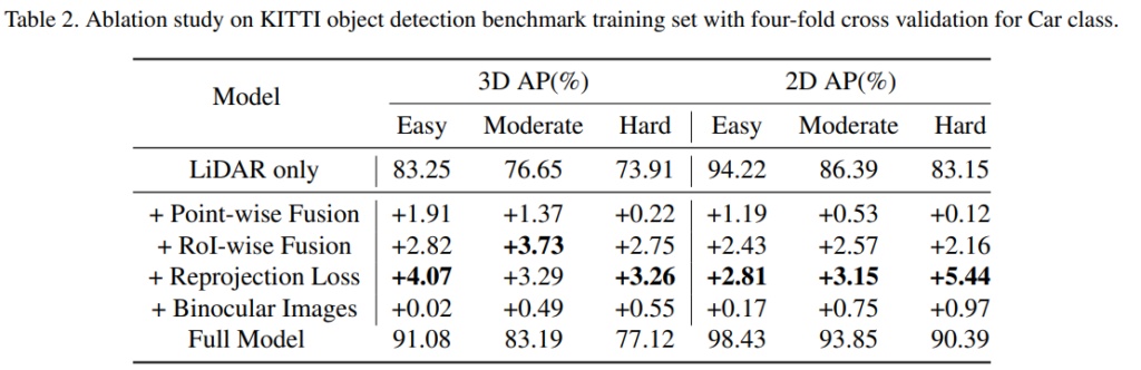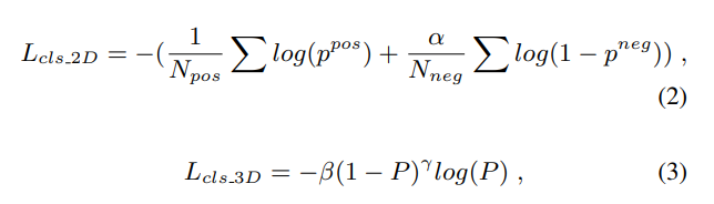 본 논문에서 제안하는 아키텍처는 classification prediction branch에서 2D-3D anchor pair의 same confidence를 share하도록 force 했다고 합니다. point-wise fused feature에 segmentation head를 적용하여 foreground mask를 예측하였는데, 이때 3D anchor는 각각의 foreground point를 구하고, 이를 image로 projection하여서 2D classification prediction을 수행했다고 합니다. 이때 2D segmentation에는 BCE, 3D segmentation에는 focal loss를 적용했다고 합니다.