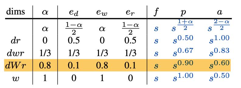 • alpha = 0 : resulting in depth and resolution scaling (dr)