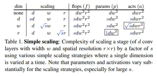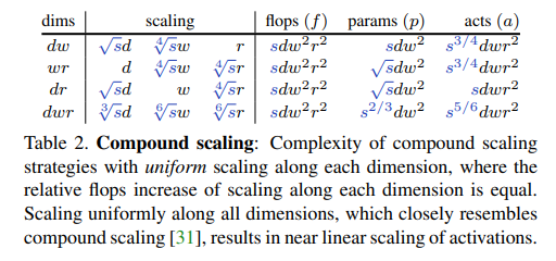 핵심은 Flops , Parameters , Activations 들을 depth , width , resolution의 식으로 표현했다.