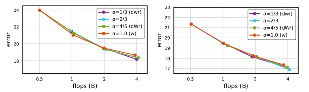 • alpha = 1/3 : corresponds to uniform compound scaling (dwr)