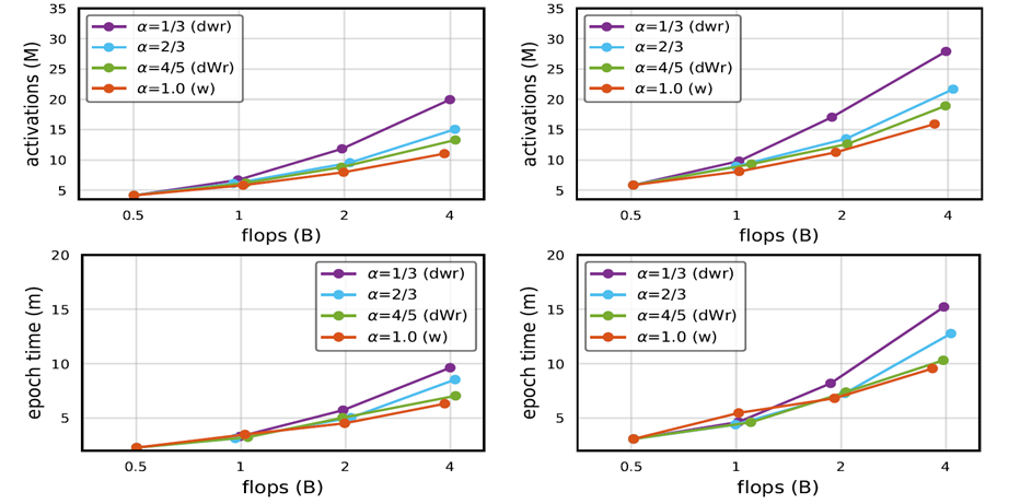 확실히 alpha값이 1에 근접할 수록 width에 초점이 맞춰지다 보니깐 activation이 조금씩 증가하고 이로인해 Runtime에서도 좋은 지표를 보여주고 있습니다.