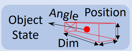 그리고 Object Orientation은 카메라 좌표계에서의 object rotation을 θ_cam이라고 할때, θ_cam는 geometry 관계를 이용해 θ_cam = [θ_obs + arctan(u^/f)]으로 구할 수 있다고 합니다. 여기서 θ_obs는 observed vehicle heading, u^은 object center와 이미지의 horizontal center의 image coordinate distance를 그리고 f는 focal length를 이야기한다고 합니다. (아래 그림에서 주황색 정도..?)