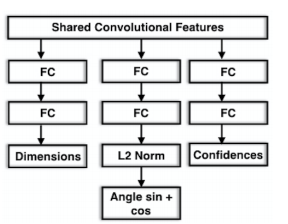 3D Bounding Box Estimation Using Deep Learning and Geometry ‘ 논문에서는 (2D Detection 결과를 crop한 이미지를 가지고) Dimensions, Angle, Confidences 3가지를 예측합니다.