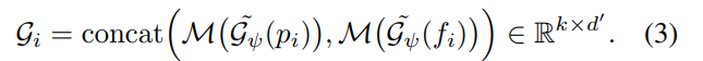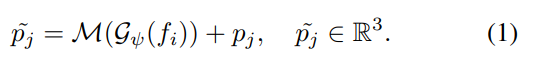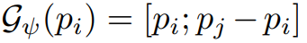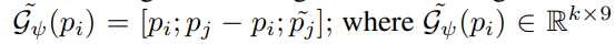 수식 (1)의 MLP는 풍부한 segmentic 정보(고차원 정보)를 가진 G(fi)를 이용하여 3DoF(pi) 예측을 목적으로 설계됩니다. 그럼으로써 양측면을 고려한 이웃 ~pj를 만들 수 있습니다.