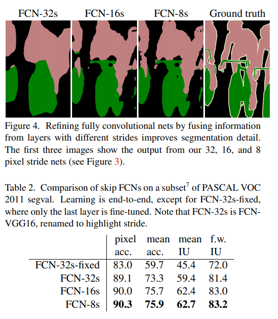저자들에 따르면, Figure4의 그림으로 확인할 수 있듯이, FCN-32s→16s→8s 순으로 보았을 때, pool3까지 이용하였을 원하는 만큼의 개선을 이루었고 점차 개선되는 정량적 수치(Table2) 감소하였기 때문에 추가적인 pool 레이어를 이용하지 않았다고 합니다.