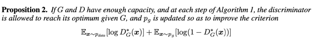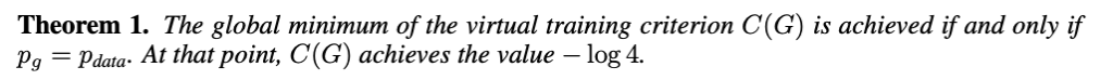 앞서 소개한 MinMax Problem에 P_{g}=P_{data} Global한 Optimum으로써 unique한 solution을 갖는다는 것을 확인할 것이고