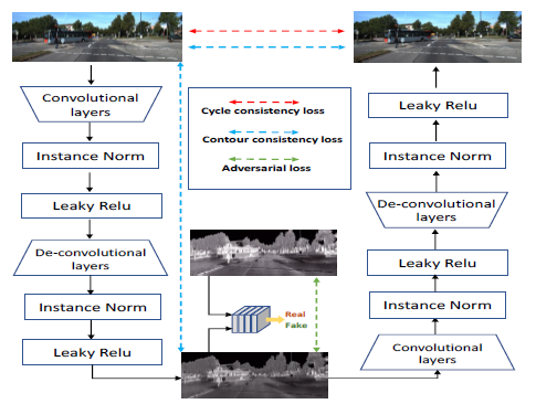 RGB에서 Thermal 영상을 얻기 위한 Translation 방법론으로 이 논문은 CycleGAN을 베이스로 했다고 한다. 다른 Loss는 기존 CycleGAN과 동일하고 하나의 Loss가 RGB 2 Thermal를 위해 추가 되었다. 그 Loss는 다음과 같다.