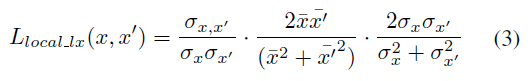 생성된 열화상 영상과 실제 열화상 영상의 Correlation을 고려하고 평균적인 illumination을 닮도록 Loss를 설계했다고 한다. 총 세개가 고려 됐으며 각각은 다음과 같다. 첫번째 식은 두 영상의 Correlation, 두번째 식은 두 영상의 Variation을 고려해 illumination을 고려, 세번쨰는 유사한 Distribution을 나타내도록 고려. 이 식을 5×5 patch로 2 stride씩 옮겨가며 적용해서 local 한 부분을 Translated Thermal 가 닮을 수 있도록 했다고 한다.