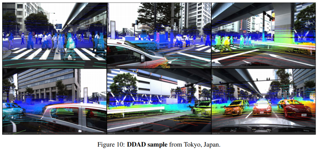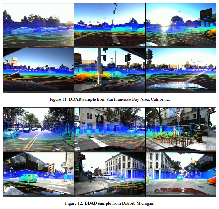 3. DDAD를 공개함. 멀티카메라와 long range Lidar를 calibration을 제공하며 다양한 방법으로 평가해봄