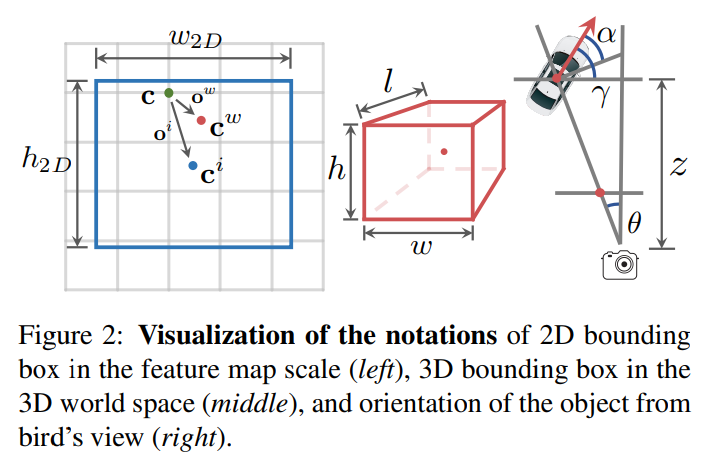 설명하기에 앞서 해당 논문에서 나타낸 수식들에서 사용하는 변수들을 알아보겠습니다. 그냥 c는 coarse center로 본 논문에서 사용하는 detection 모델의 백본인 Centernet의 결과로 나오는 스코어맵에서 뽑은 센터지점 입니다. 그리고 c^(i)는 2D 이미지에서의 center이며, c^(w)는 3D 물체의 센터입니다.