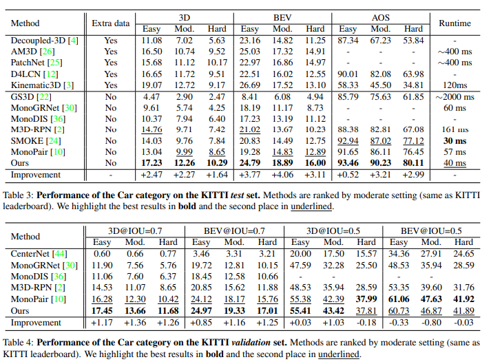 설명하면 project 3D center c^(w)의 값을 모델이 예측한게 아닌 GT를 입력했을때 정확도가 11.12%에서 18.95로 향상했다고 합니다. (근데 위에는 99.97%로 되어있네요..) 또한 depth도 38.01%로 향상했다고 합니다.