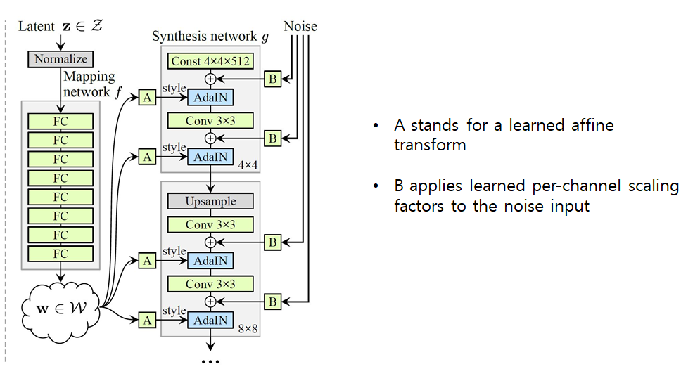 제안하는 모델의 구조는 StyleGAN의 구조를 본따왔다고 보시면 될 것 같습니다.