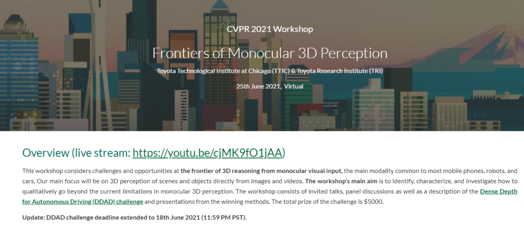 이번 CVPR2021 workshop “Frontiers of Monocular 3D Perception” 에 참여하여 운좋게도 Semi-supervised 부문에서 상을 받게되었습니다. 그와 관련된 참가기를 작성해보겠습니다
