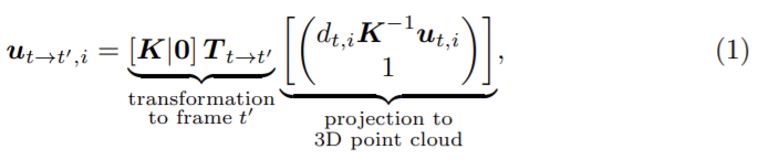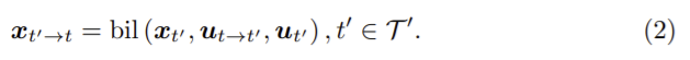 와핑된 이미지 xt’→t의 픽셀 좌표는 ut 로 변환은 다음 식으로 나타낼 수 있다.