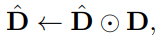 이후 i번째 token의 drop 여부와 keep 여부는 각각 \pi_{i,0}, \pi_{i,1}로 표현되며, 식(3)과 같이 새롭게 \pi 로부터 생성된 Decision mask \hat{D}와 기존 Decision mask D와의 Hadamard product 연산을 통해 새로운 Decision mask \hat{D}을 update 하게 됩니다. 여기서 Hadamard product는 동일한 크기의 matrix에서 동일한 위치의 원소 곱을 의미합니다.
