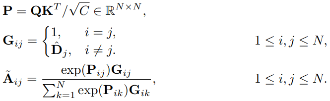 두번째로는 Decision mask D에서 drop으로 선정되는 token의 수가 일정하지 않아, 연산 시 만약 drop에 해당하는 token을 drop시키고 나머지 token만 단순히 연산하게 되면 불규칙한 입력 개수로 병렬 연산하기 힘들기에 식 (5)와 같았던 연산을 식 (6)으로 변경해 연산을 진행하였습니다. Query, Key vector로 연산하는 과정은 병렬 연산의 편의성을 위해 모든 token feature에 대해 연산하되 결과값으로 나온 matrix에 Softmax 연산 적용 시, Decision mask를 통한 masking으로 drop 시켰습니다.