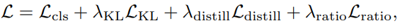 위와 같은 세가지의 Loss를 각각 \lambda{KL}=0.5, \lambda{distill}=0.5, \lambda{ratio}=2의 가중치로 합하여 최종 Loss를 설계하였습니다.