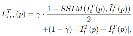 식을 보면 기존 방법론과 같이 SSIM과 L1을 이용해서 Recontruction thermal와 target thermal을 비교하여 Depth Network를 학습합니다.