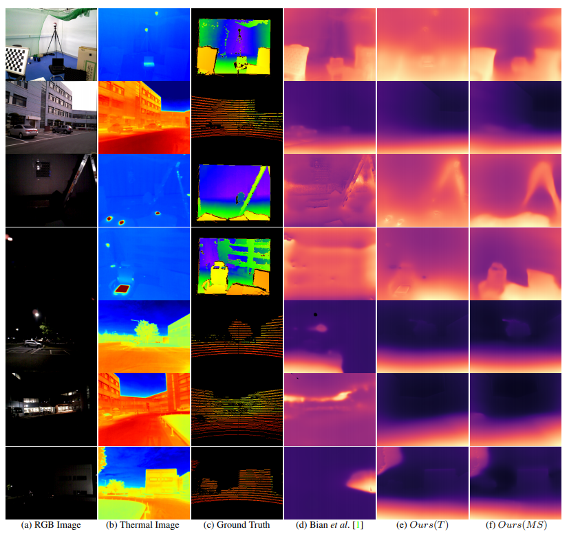 이 논문에서는 [2] 에서 스케일에 강인한 Depth 추정을 위해서 제안된 geometric consistency loss 를 사용하였으며, 씬이 바뀌어도 Thermal 의 균일한 온도를 가지는 특징과 이 로스와 결합하여 Smoothness 효과도 가져왔다는 것을 찾았다고 합니다.