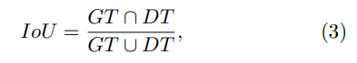 해당 수식에서 GT는 ground truth box, DT는 detection box 입니다. 그러면 이러한 IoU 계산을 다음과 같이 제안합니다.